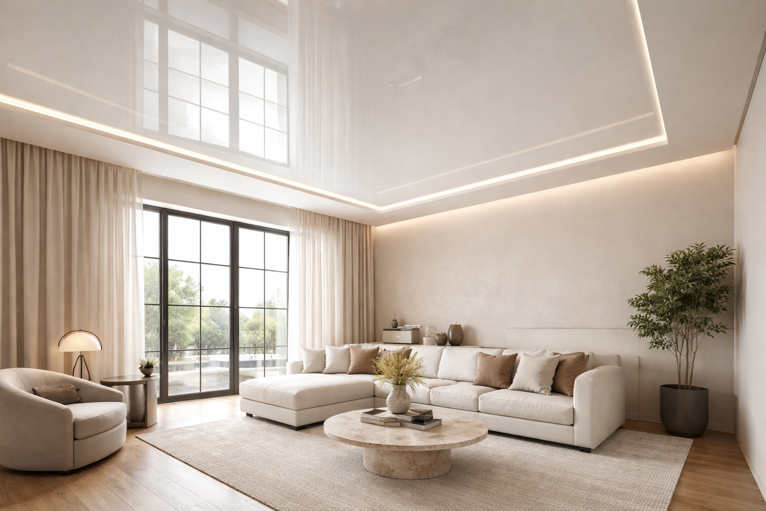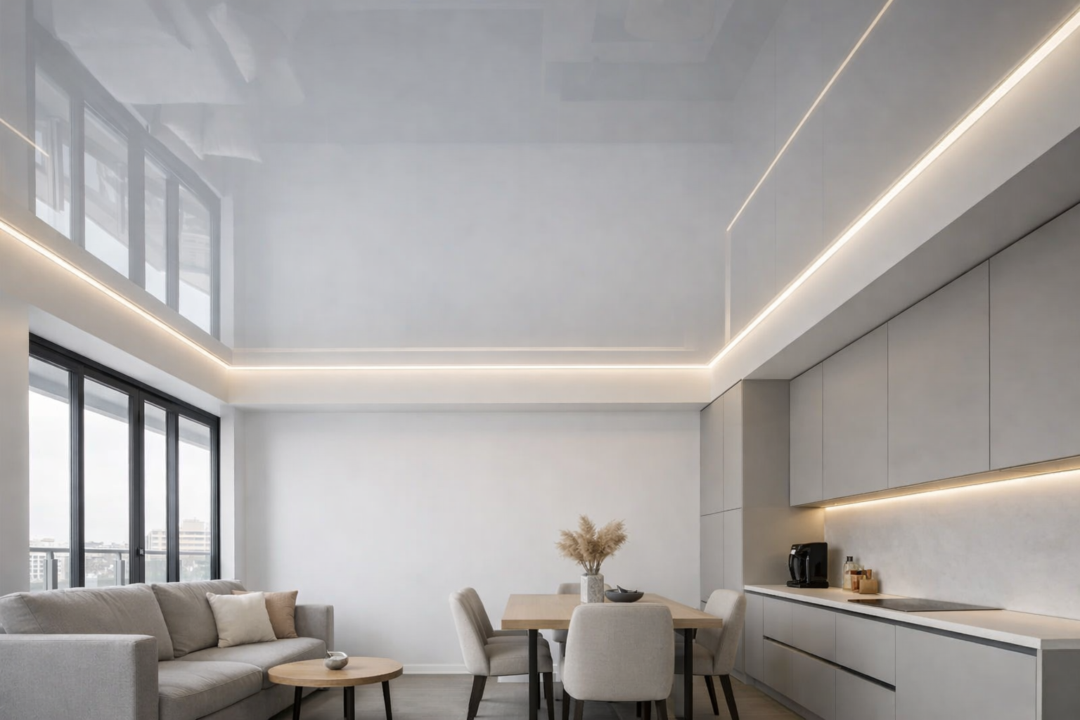 Три причины, почему глянцевый потолок — не про «дешёвое зеркало», а про грамотный свет и архитектурную чистоту.